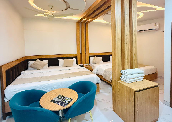The Family Suite at Hotel Radha Orchid is spaciously designed to accommodate families with comfort and ease. It features multiple sleeping arrangements, modern amenities, and a welcoming atmosphere. Ideal for bonding moments, it ensures a relaxed and memorable stay for all.