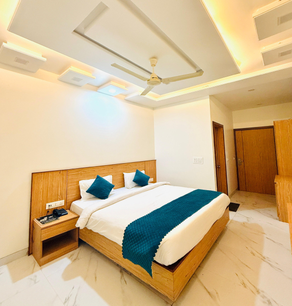 The Deluxe Room with Balcony at Hotel Radha Orchid offers a perfect blend of comfort and elegance. Step out onto your private balcony to enjoy refreshing views and peaceful surroundings. Thoughtfully designed interiors and modern amenities ensure a relaxing stay.